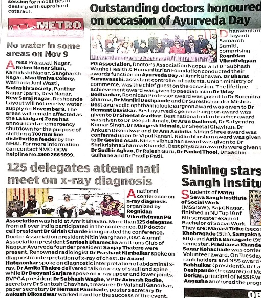 | 3 | 2023, Amrit Bhavan Nagpur | Dr. Subhash Waghe Foundation | Dr. S. B. Selote Memorial - Best Nidan Vid Award | Dr. Vivek Dube (Bilaspur) |  |  |  |