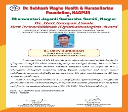 | 2 | 2022, Hotel Regenta Nagpur | Dr. Subhash Waghe Foundation | Dr. H. N. Umale - Best Netrachikitsak Award | Dr. Uday Kurudkar (Daund) |  |  |  |