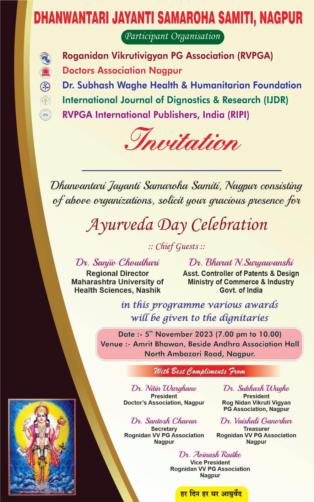 | 3 | 2022, Hotel Regenta Nagpur | Dr. Subhash Waghe Foundation | Dr. Anant Dharmadhikari - Best Kayachikitsak Award | Dr. Mrutyunjay Sharma (Nagpur) |  |  |  |